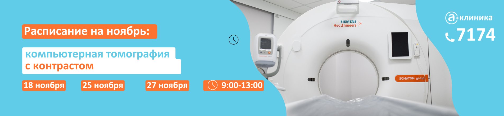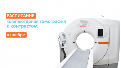 В НОЯБРЕ компьютерная томография проводится по вторникам и четвергам : 4.11, 6.11, 11.11, 13.11, 18.11, 25.11, 27.11 с 9:00 до 13:00