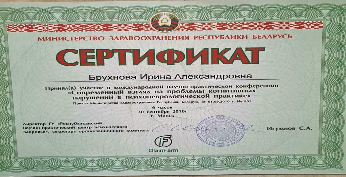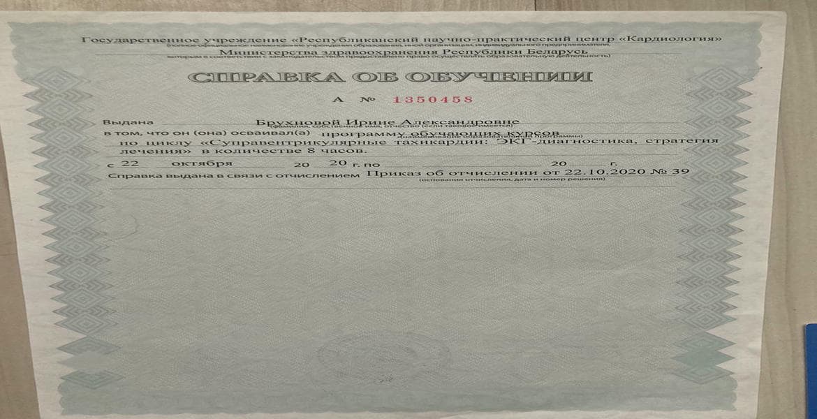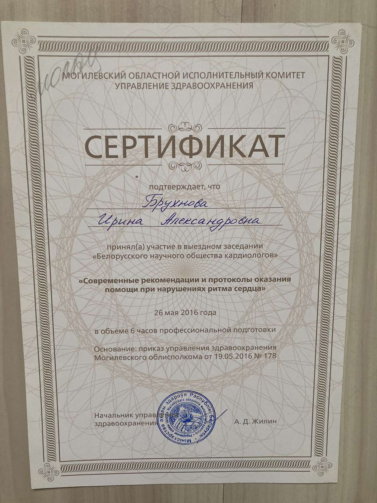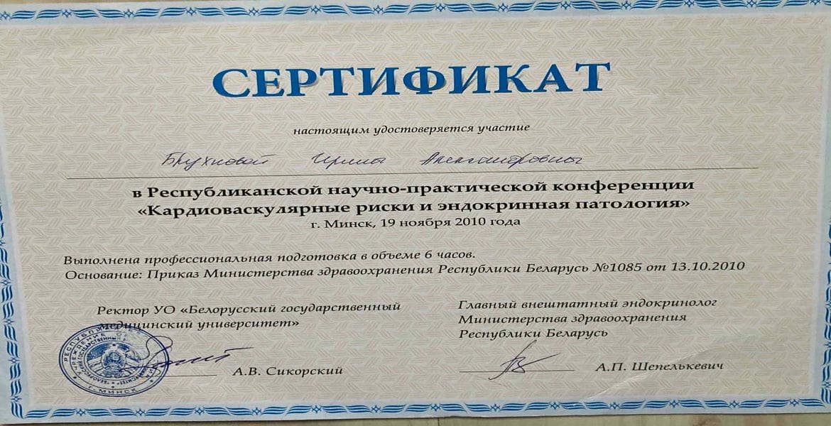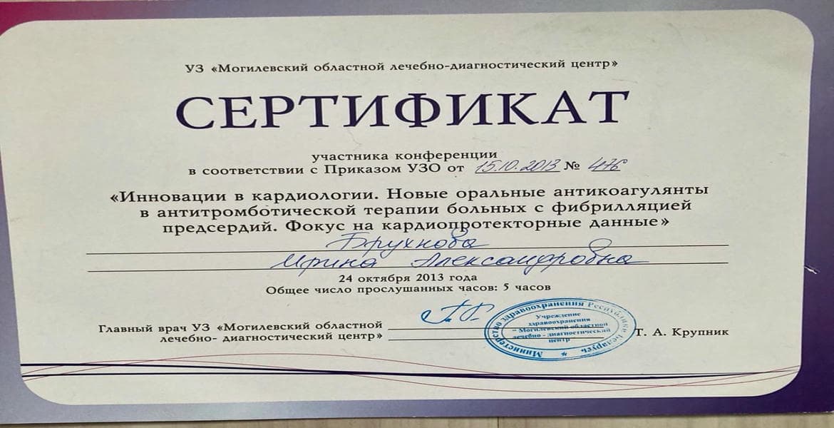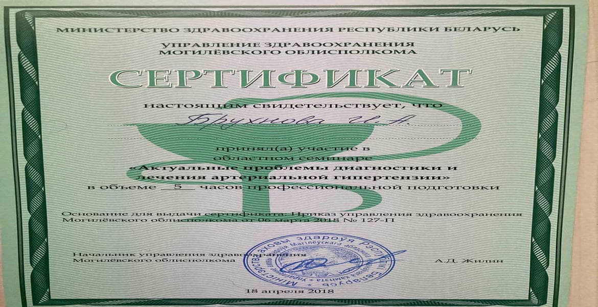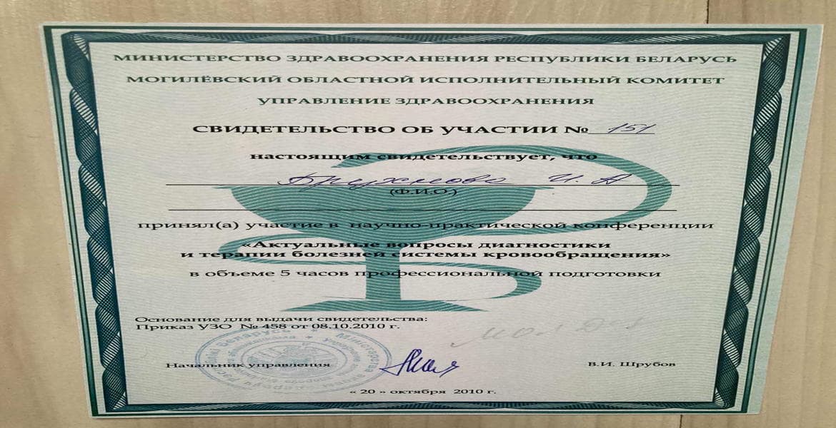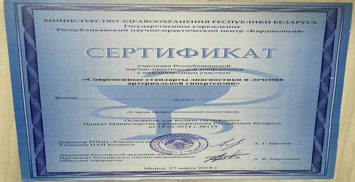 2005г. - г. Витебск, ВГМУ «Диагностика и лечение терапевтических заболеваний».