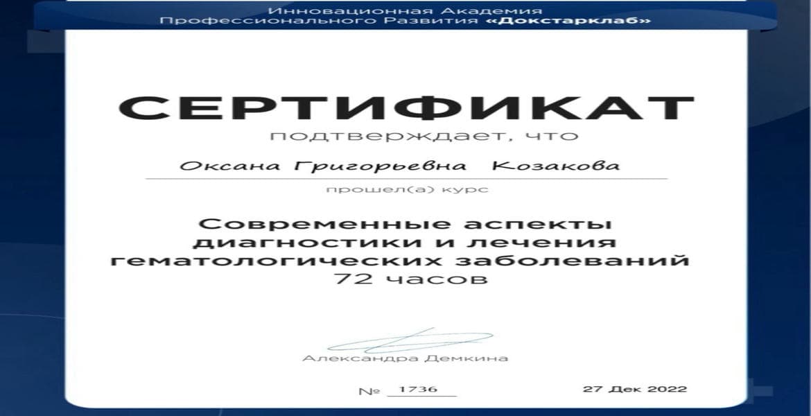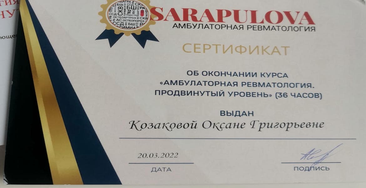 2022 г. Инновационная Академия профессионального развития Академия «DocStarClub». Курс лекций «Зазеркальная гематология». Курс лекций «Амбулаторная ревматология продвинутый».