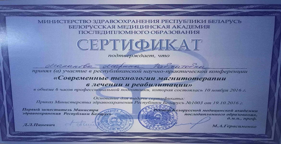 ноябрь 2016 г. – «Современные технологии магнитотерапии в лечении и реабилитации»;