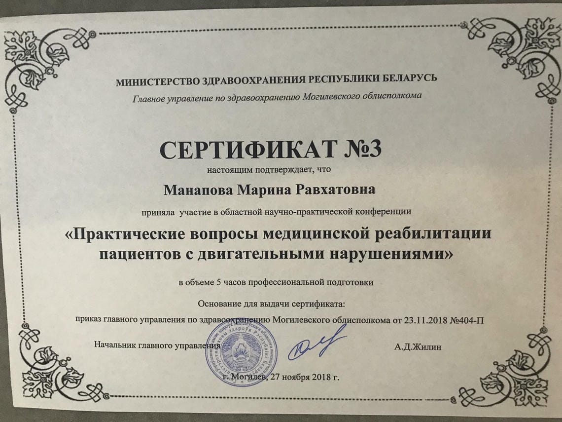 ноябрь 2018 г. – «Практические вопросы медицинской реабилитации пациентов с двигательными нарушениями»;