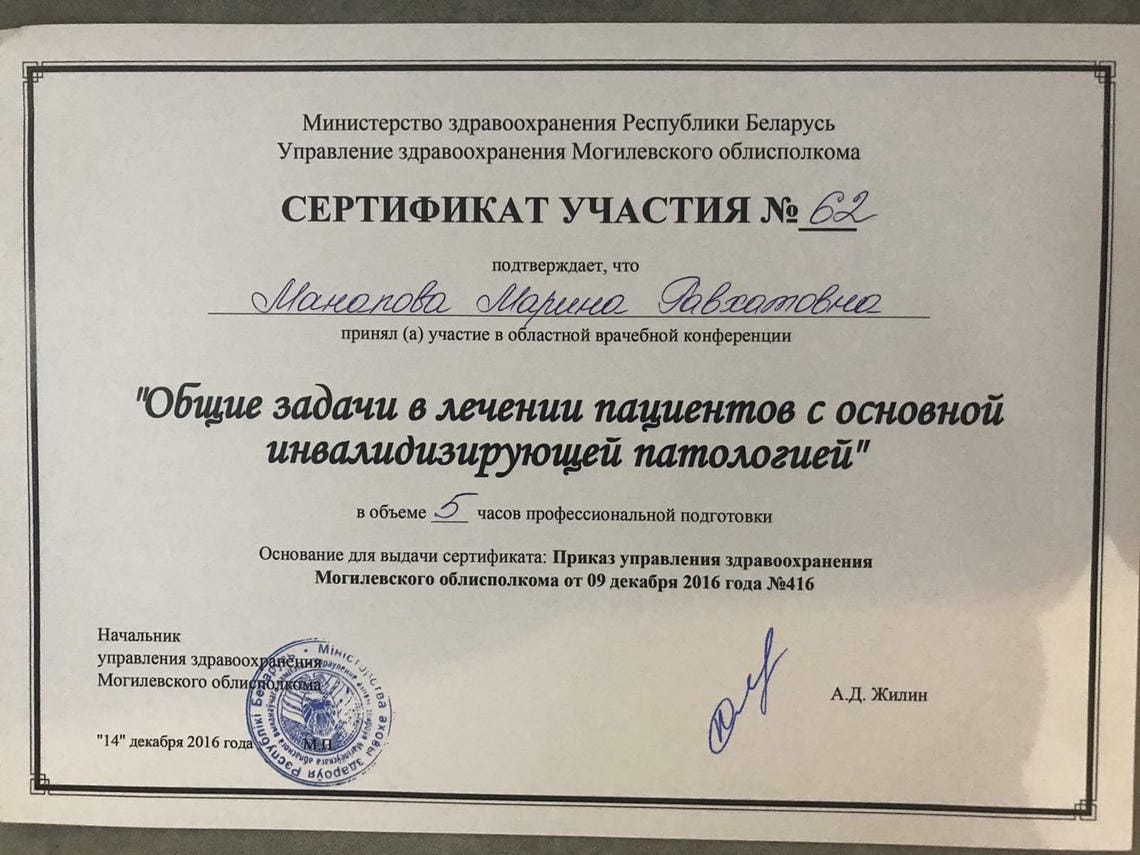 декабрь 2016 г. – «Общие задачи в лечении пациентов с основной инвалидизирующей патологией»;