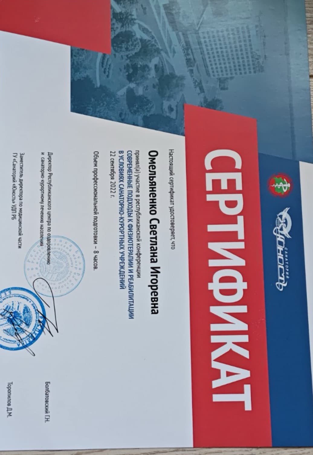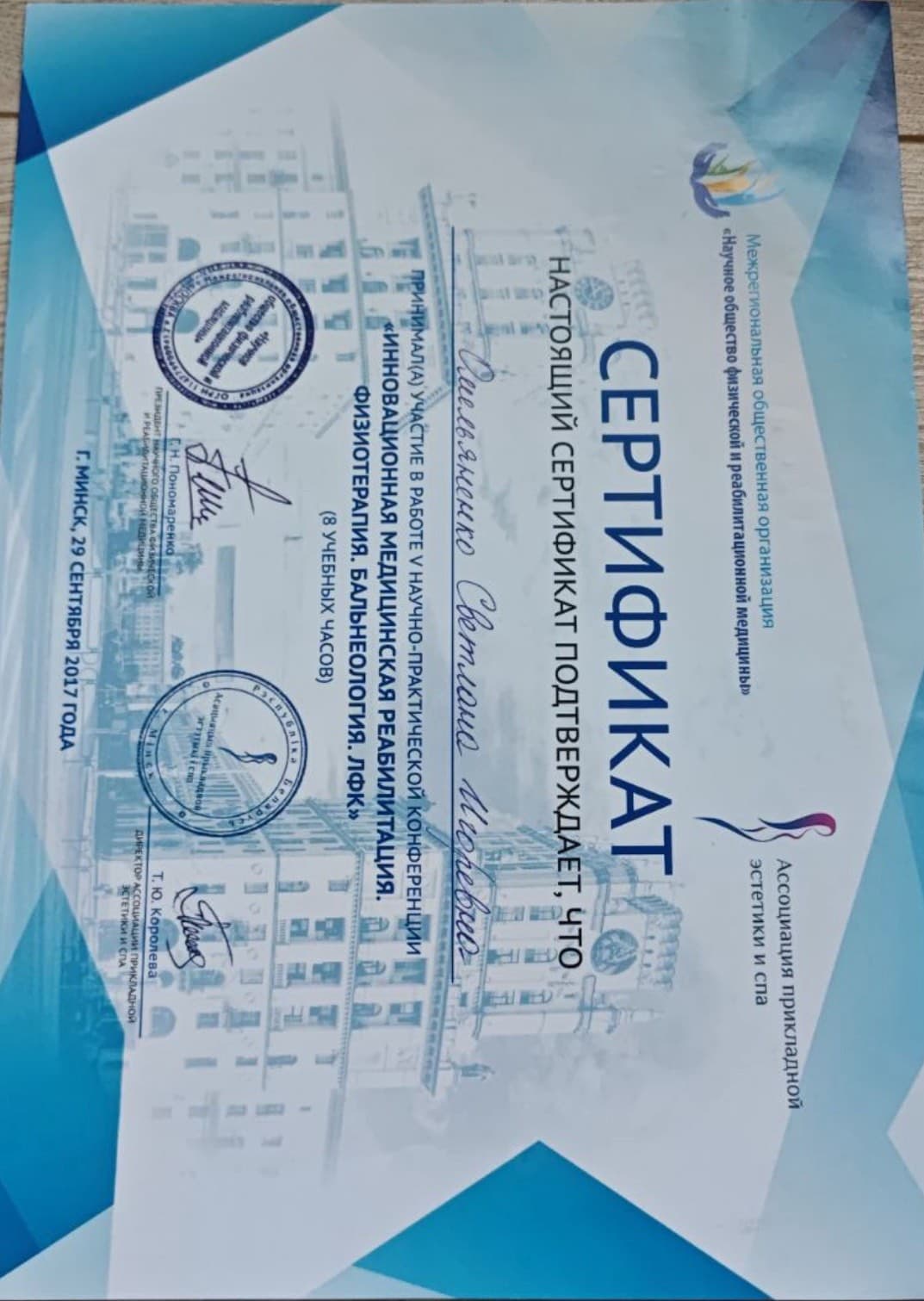 25.08.2003 – 21.11.2003 — специализация «Физиотерапия»