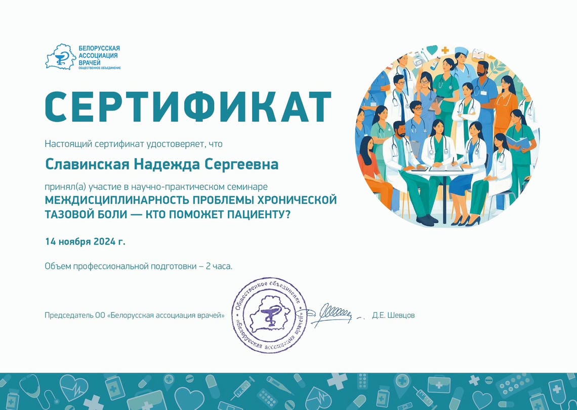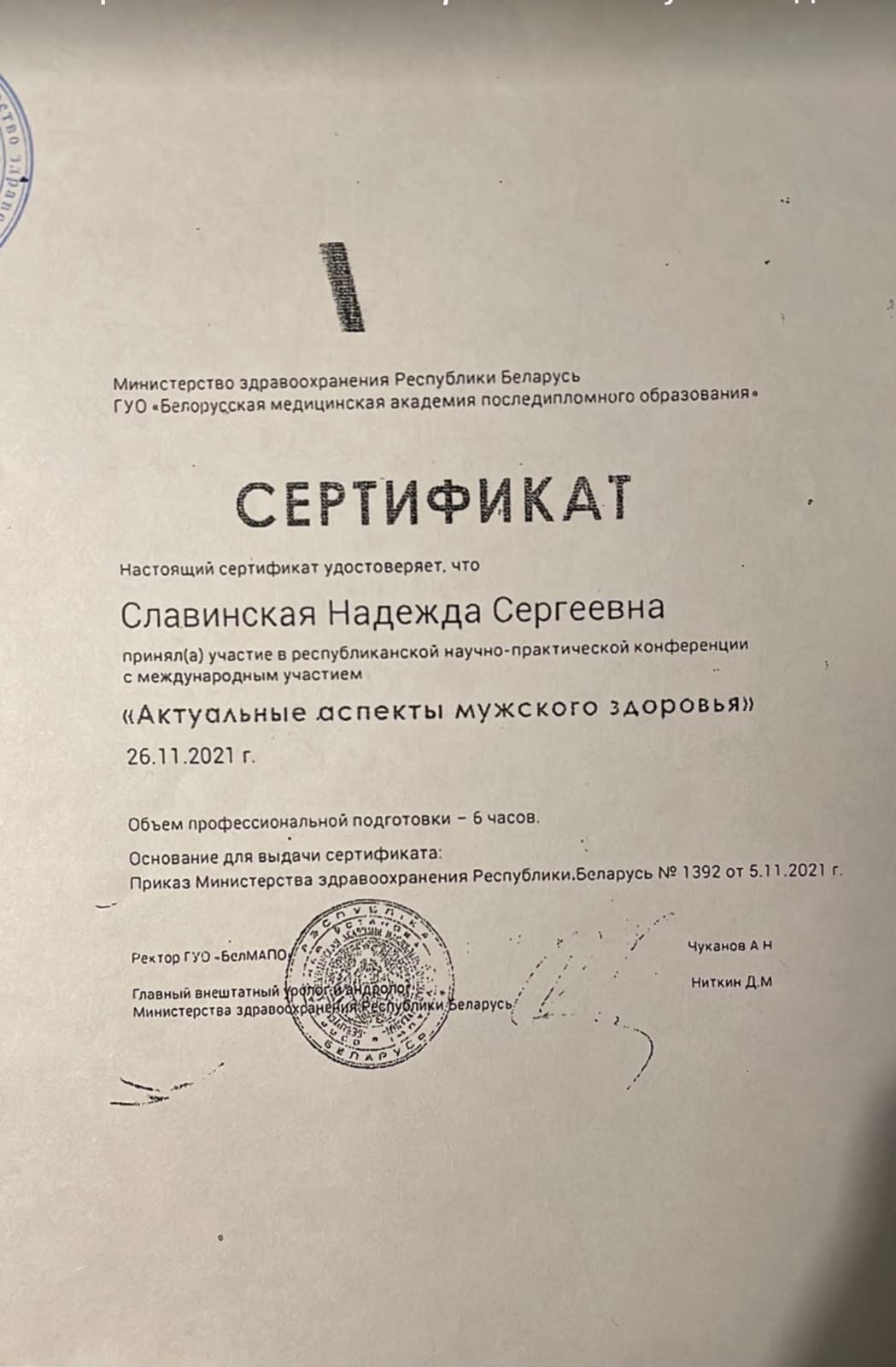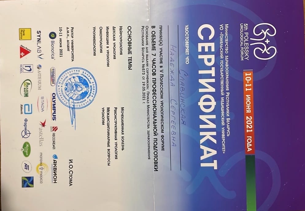. 2023 - «Ультразвуковая диагностика в специальности: ультразвуковая диагностика патологии в урологии и нефрологии» (УО "ГГМУ").