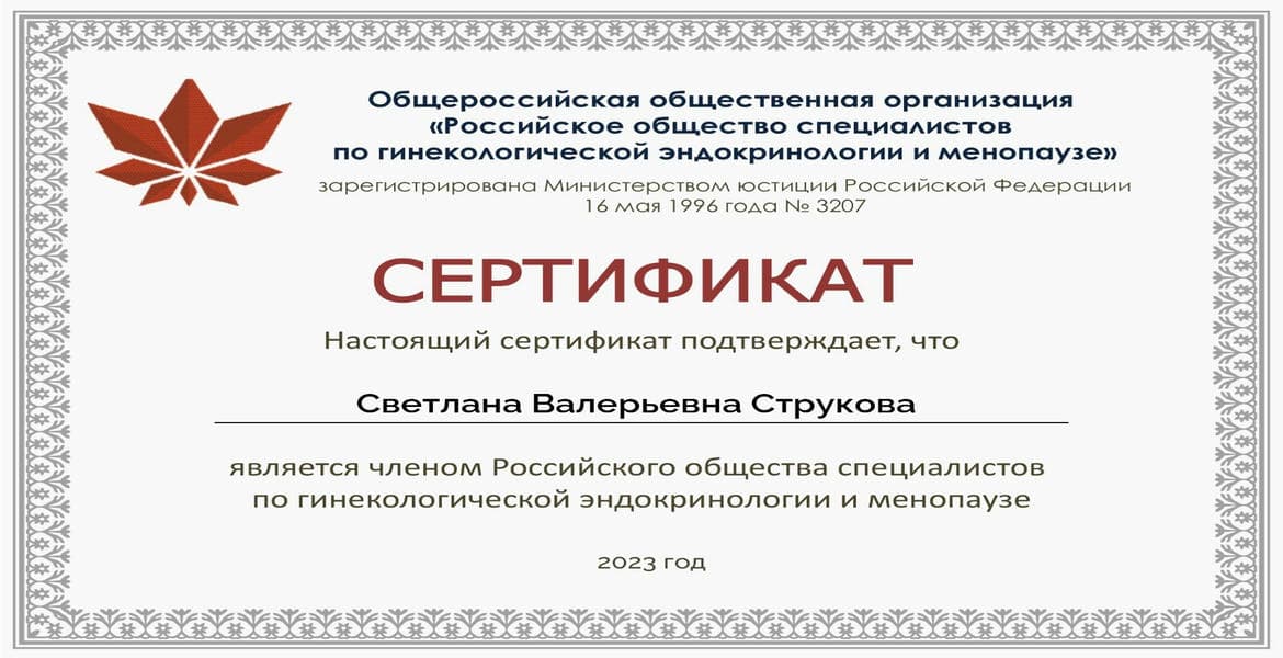 Член «Ассоциации гинекологов-эндокринологов России» и член «Ассоциации по менопаузе».