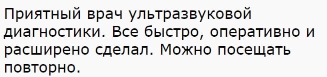 Проводит почти все виды ультразвуковых исследований: брюшной полости (в т.ч. печени и поджелудочной железы с эластографией), включая УЗИ желудка, кишечника и большого сальника, селезенки, почек и надпочечников, мочевого пузыря, щитовидной (в т.ч. с эластографией), молочной железы, слюнных желёз, предстательной железы, полового члена, органов мошонки, сердца (взрослым и детям старше 5 лет), сосудов шеи (брахиоцефальных артерий), УЗИ пахового и бедренного канала, допплерографию сосудов внутренних органов (печени, почек и др.), а также УЗИ органов малого таза при гинекологических заболеваниях, УЗИ анального канала, промежности, мягких тканей тела, лимфатической системы, коленного, плечевого, локтевого, голеностопного сустава, суставов кисти, УЗИ периферических нервов и др.