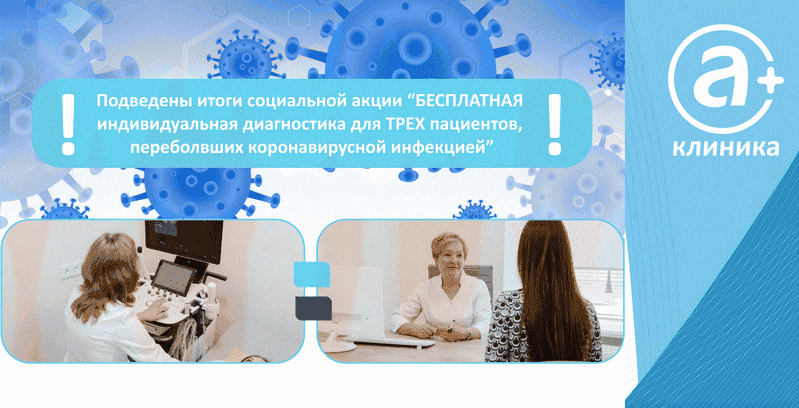 Уважаемые посетители медицинского центра «А Клиника», социальная акция «БЕСПЛАТНАЯ индивидуальная диагностика для ТРЕХ пациентов, переболевших коронавирусной инфекцией» подошла к концу. В период с 22 февраля по 13 марта участники, которые переболели Covid-19, прислали нам множество заявок. В период с 15 по 22 марта комиссия медицинского центра «А Клиника» во главе с заместителем директора по медицинской части Новиковым С.Л, выбрала 3 истории болезни. Администрация "А Клиники" 22 марта вышла на связь со всеми победителями социальной акции, дабы сообщить приятную новость о бесплатной диагностике. Комплексная диагностика для трех победителей пройдет в определенное время, заранее согласованное с участниками социальной акции.